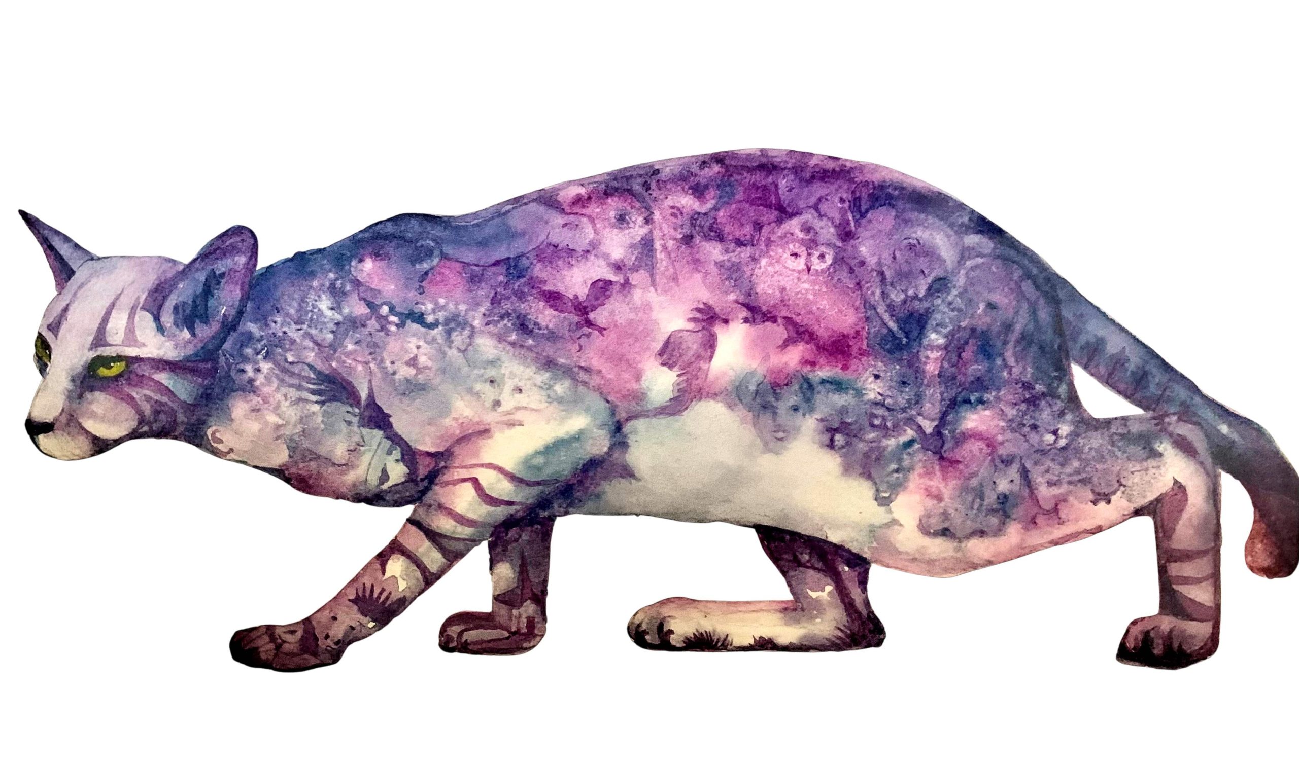 Purple Cat with Owl